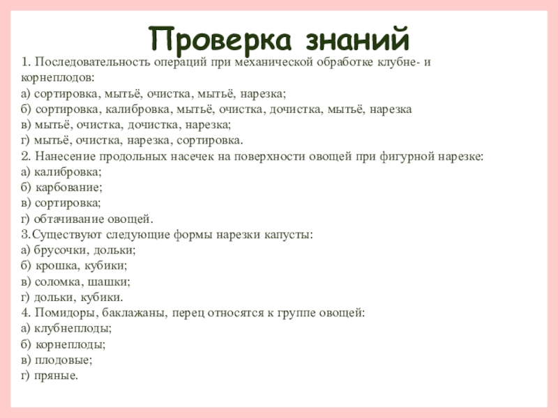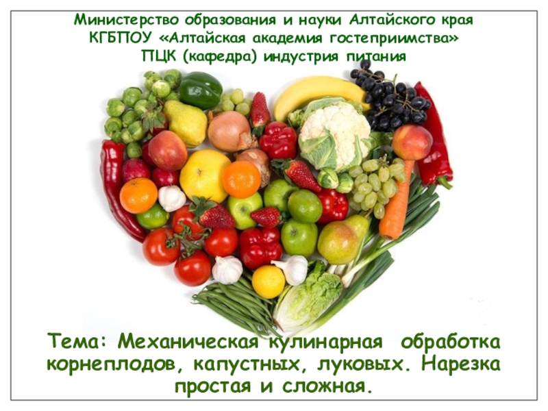 Тема: Механическая кулинарная обработка корнеплодов, капустных, луковых. Нарезка простая и сложная.