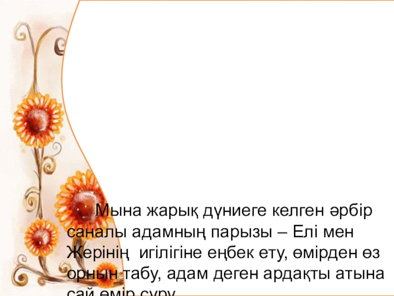 Слайд 2 Мына жарық дүниеге келген әрбір саналы