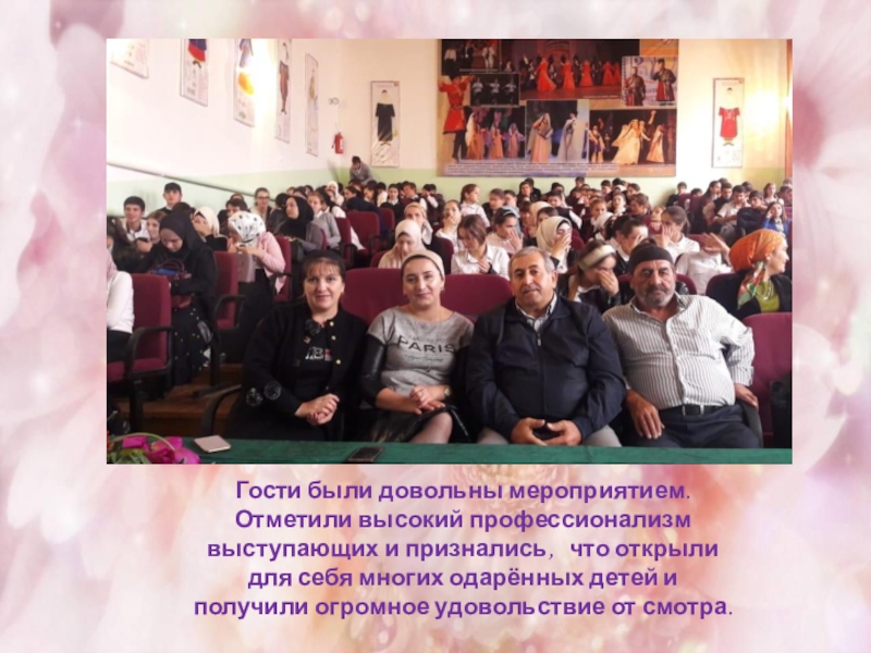 Слайд 4Гости были довольны мероприятием. Отметили высокий профессионализм выступающих и признались,   что