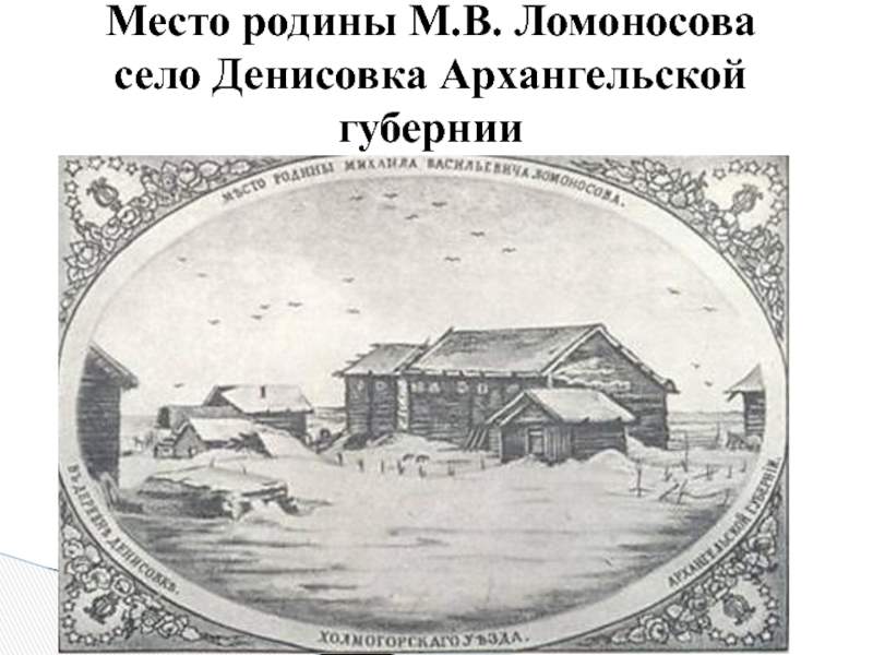 Слайд 4Место родины М.В. Ломоносова село Денисовка Архангельской губернии