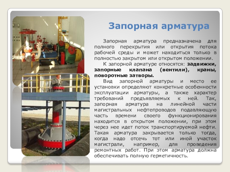 Запорная арматура предназначена для полного перекрытия или открытия потока рабочей