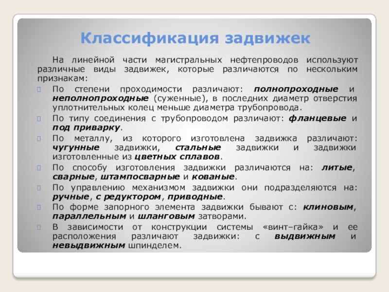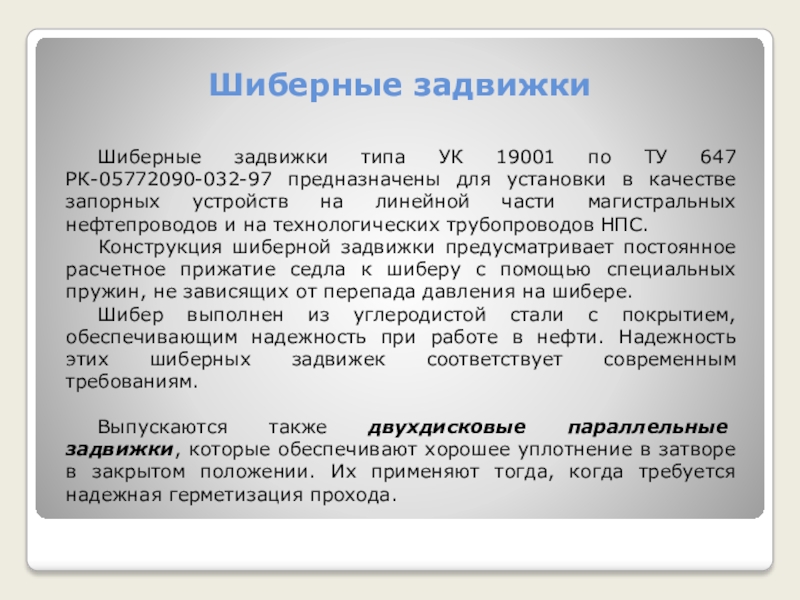 На линейной части магистральных нефтепроводов используют различные виды задвижек, которые
