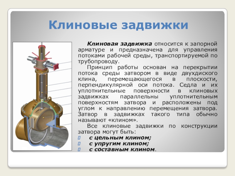 Клиновая задвижка относится к запорной арматуре и предназначена для управления