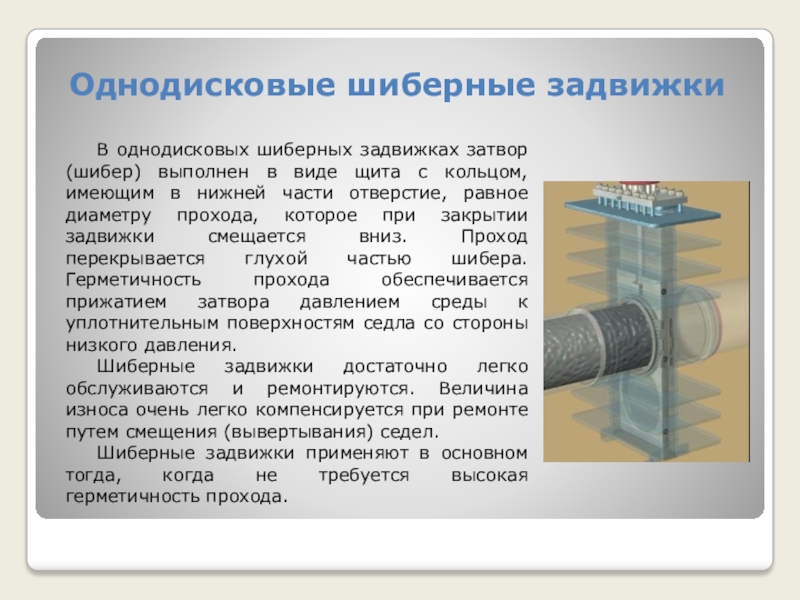 Шиберные задвижки применяют в основном тогда, когда не требуется высокая герметичность прохода.