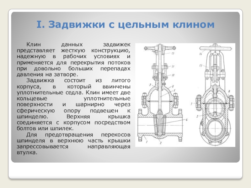 Клин данных задвижек представляет жесткую конструкцию, надежную