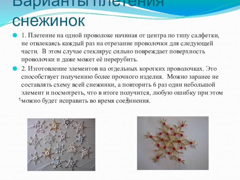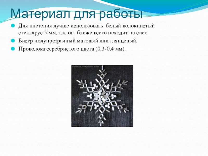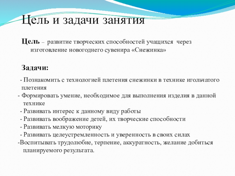 - Познакомить с технологией плетения снежинки в технике игольчатого