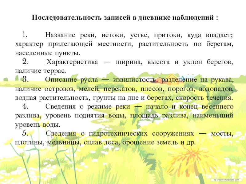 Слайд 5Последовательность записей в дневнике наблюдений :