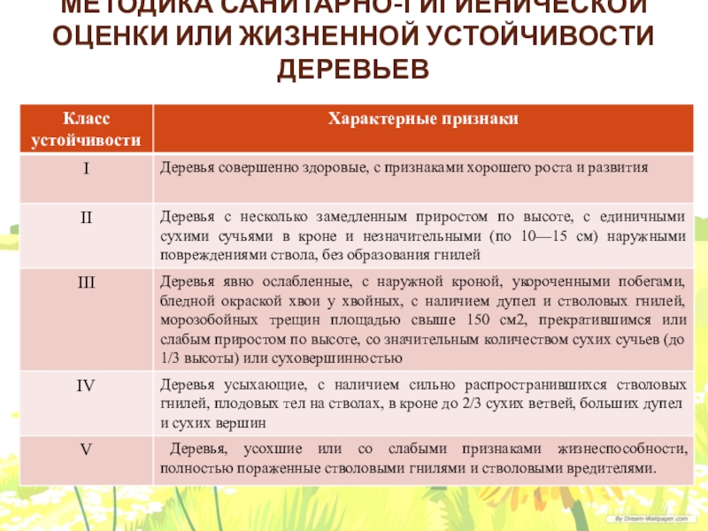 Слайд 20Методика санитарно-гигиенической оценки или жизненной устойчивости деревьев