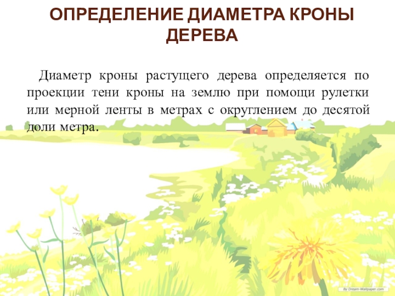 кроны на землю при помощи рулетки или мерной ленты в метрах с округлением до десятой доли метра.