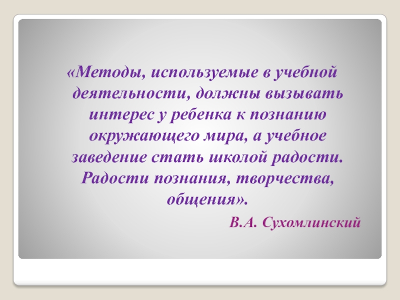 деятельности, должны вызывать интерес у ребенка к познанию окружающего мира, а учебное заведение стать школой радости. Радости познания, творчества, общения».