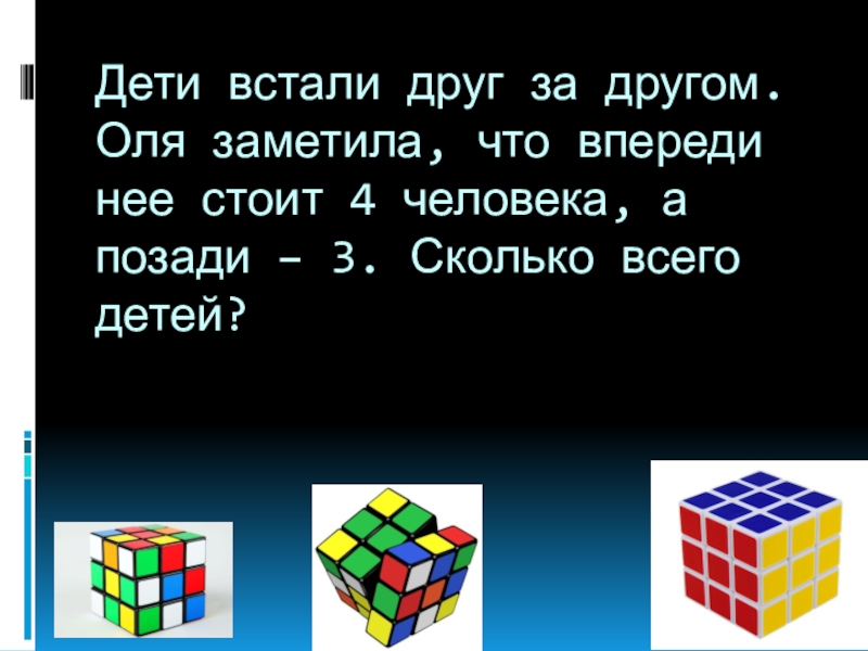 Слайд 20Дети встали друг за другом. Оля заметила, что впереди нее стоит