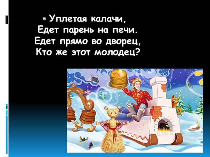 Слайд 26Уплетая калачи,