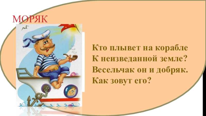 МОРЯККто плывет на кораблеК неизведанной земле?Весельчак он и добряк.Как зовут его?