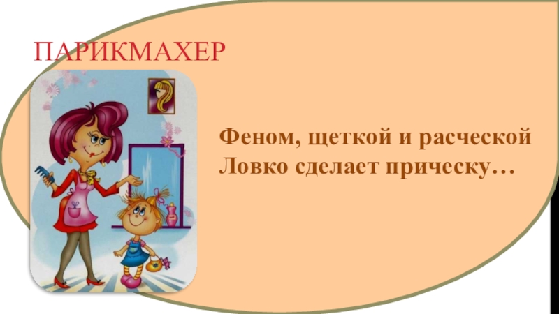 ПАРИКМАХЕРФеном, щеткой и расческойЛовко сделает прическу…