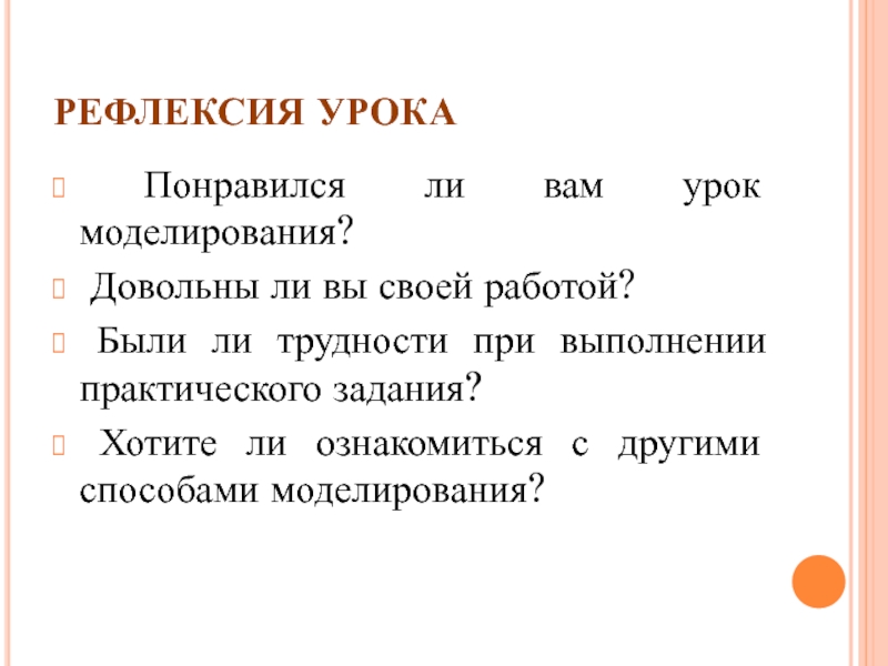 ознакомление учащихся с понятием о моделировании, с приемами моделирования.