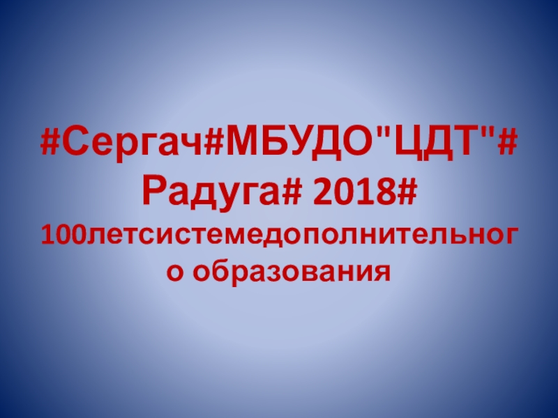 Слайд 1#Сергач#МБУДО"ЦДТ"# Радуга# 2018# 100летсистемедополнительного образования