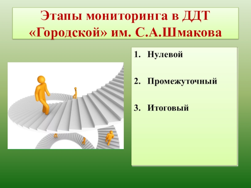 Слайд 9Этапы мониторинга в ДДТ «Городской» им. С.А.Шмакова