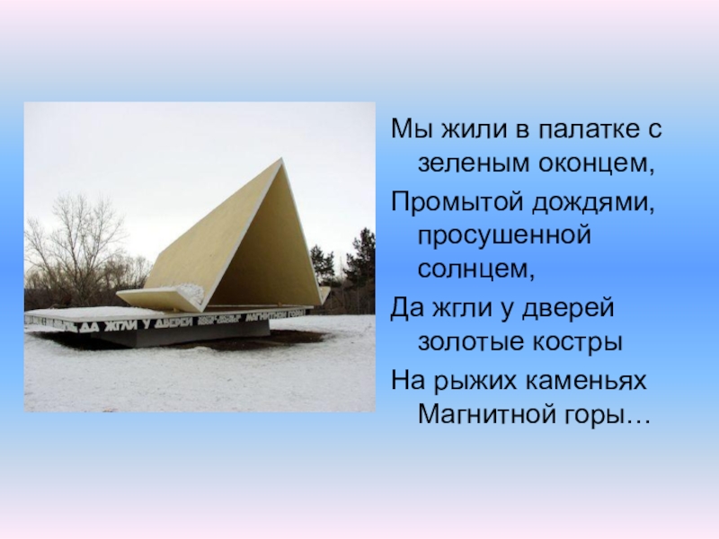 Памятник «Первым комсомольцам строителям Магнитки»скульптор В.Зайков