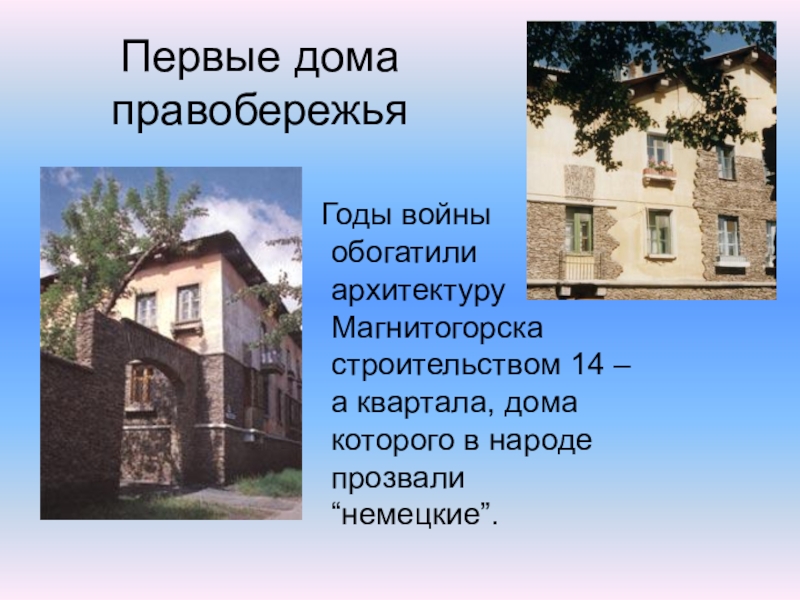 Первые дома правобережья