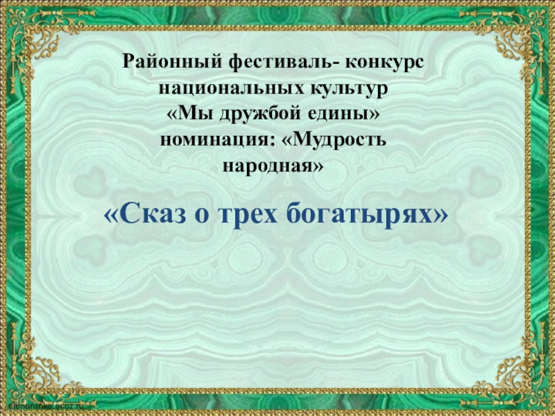 Районный фестиваль- конкурс национальных культур «Мы дружбой едины» номинация: «Мудрость народная» «Сказ о трех богатырях»