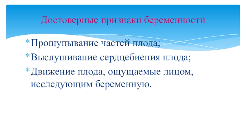 Слайд 10Первое шевеление плода у первородящей в 20 недель; у повторнородящей в