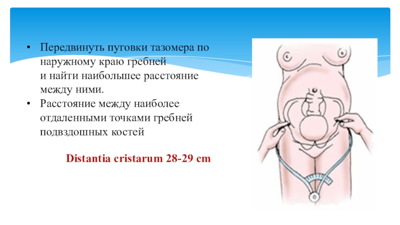 Слайд 21Передвинуть пуговки тазомера по наружному краю гребней