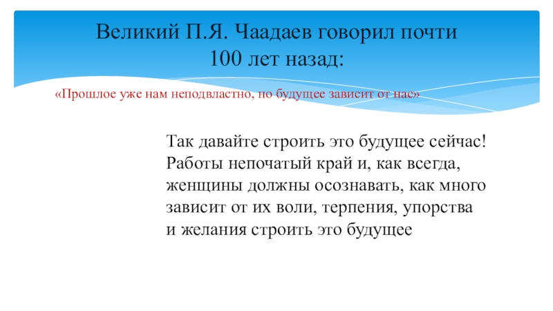 Слайд 2«Прошлое уже нам неподвластно, но будущее зависит от нас»