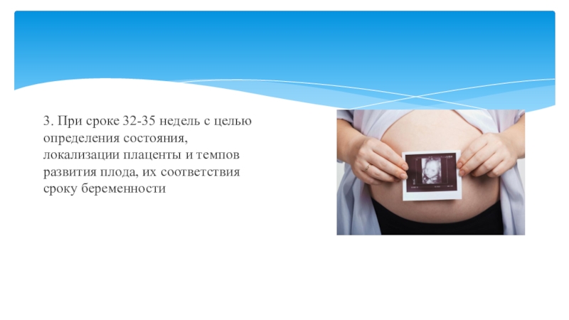 Слайд 393. При сроке 32-35 недель с целью определения состояния, локализации плаценты
