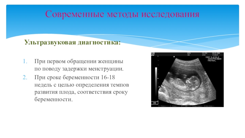 16-18 недель с целью определения темпов развития плода, соответствия сроку беременности.