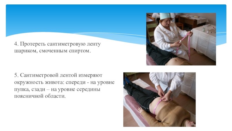 Слайд 284. Протереть сантиметровую ленту шариком, смоченным спиртом.