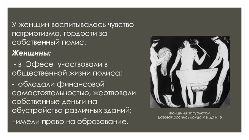 Слайд 13У женщин воспитывалось чувство патриотизма, гордости за собственный полис.