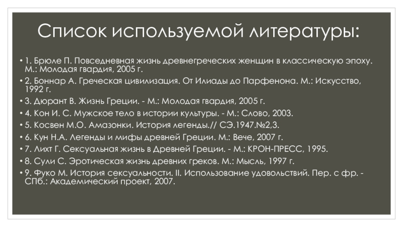 1. Брюле П. Повседневная жизнь древнегреческих женщин в классическую