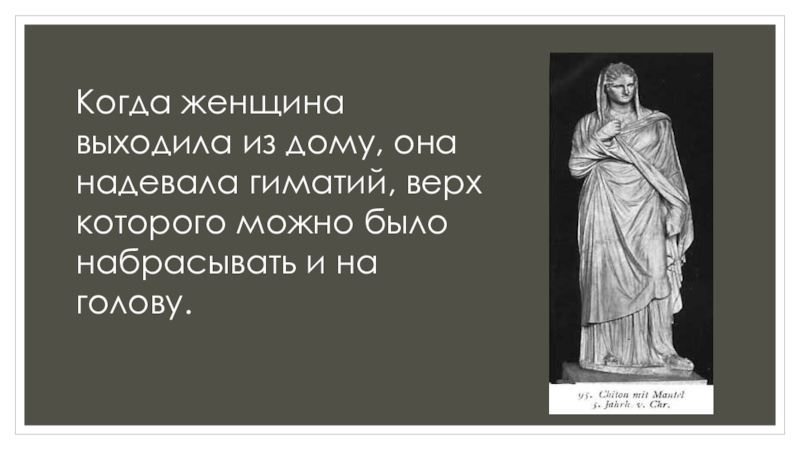Слайд 8Когда женщина выходила из дому, она надевала гиматий, верх которого можно
