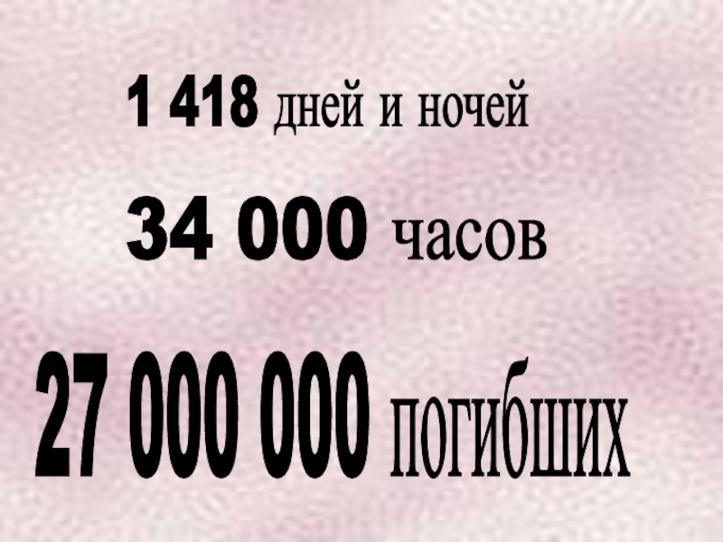 1 418 дней и ночей 34 000 часов 27 000 000 погибших