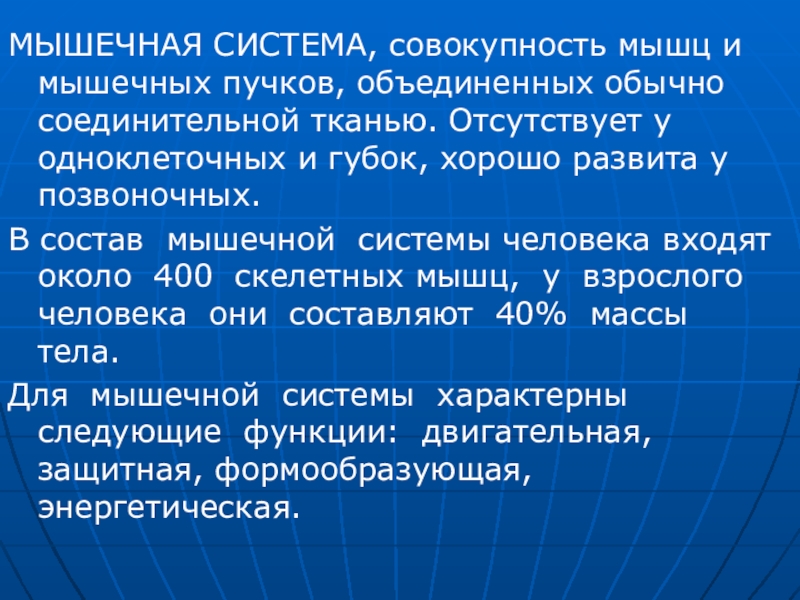 Слайд 2МЫШЕЧНАЯ СИСТЕМА, совокупность мышц и мышечных пучков, объединенных обычно соединительной тканью.