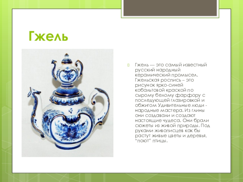 Гжель — это самый известный русский народный керамический промысел. Гжельская роспись