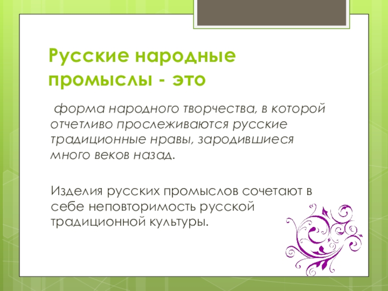Изделия русских промыслов сочетают в себе неповторимость русской традиционной культуры.