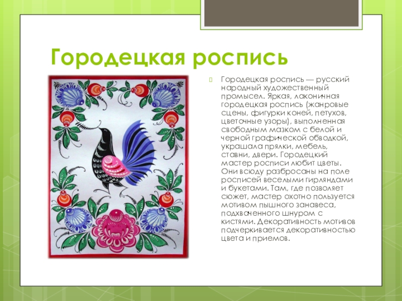 Городецкая роспись — русский народный художественный промысел. Яркая, лаконичная городецкая