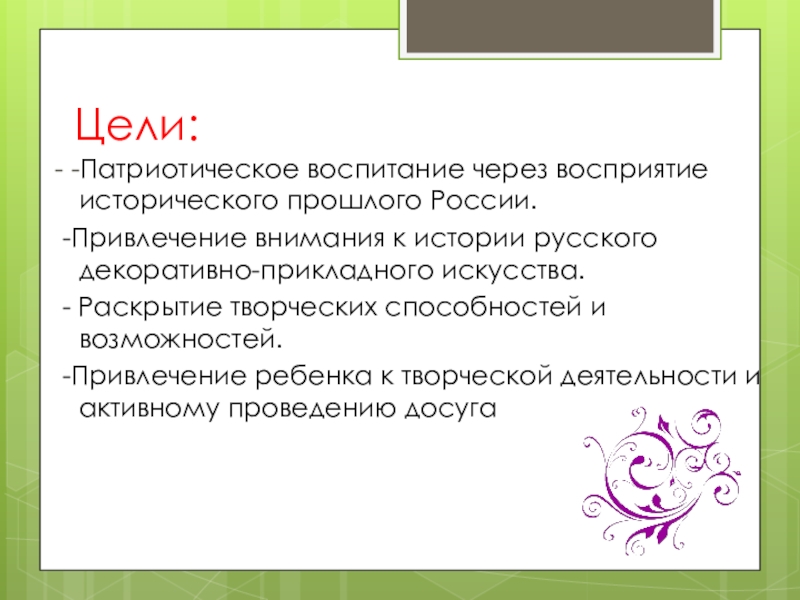 - -Патриотическое воспитание через восприятие исторического прошлого России.