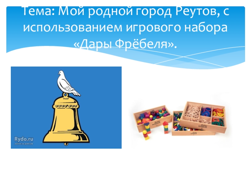 Слайд 1Тема: Мой родной город Реутов, с использованием игрового набора «Дары Фрёбеля».