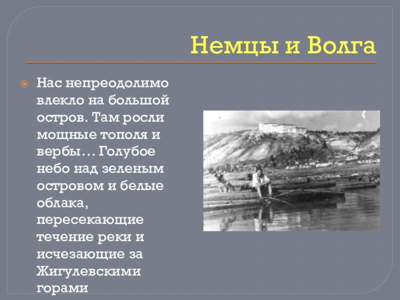 тополя и вербы… Голубое небо над зеленым островом и белые облака, пересекающие течение реки и исчезающие за Жигулевскими горами