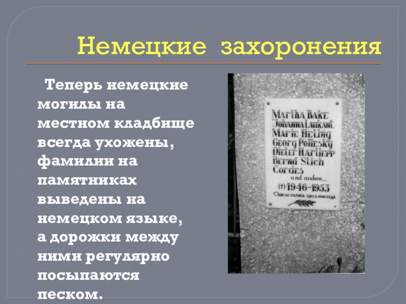 Теперь немецкие могилы на местном кладбище всегда ухожены, фамилии на
