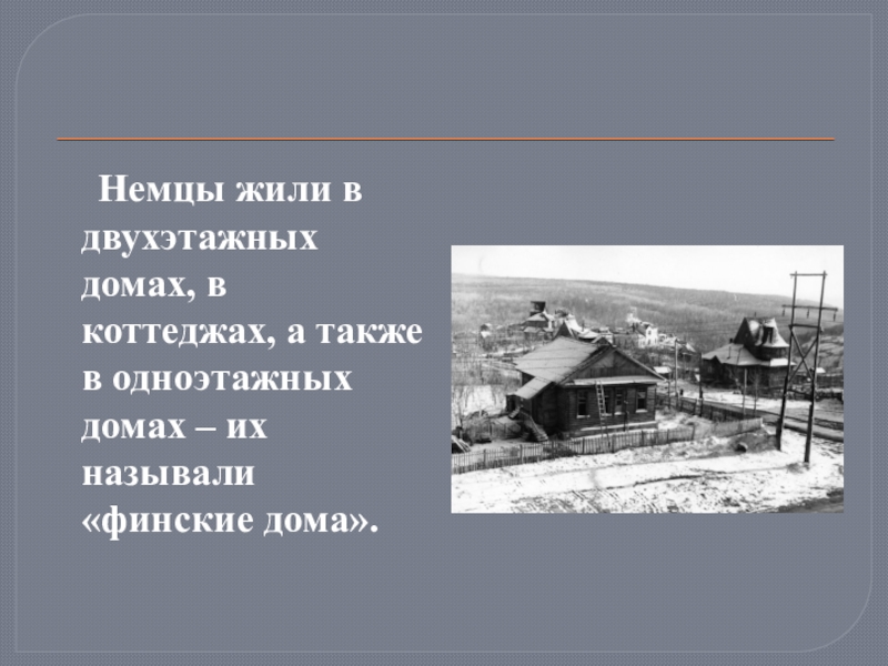 Слайд 10 Немцы жили в двухэтажных домах, в коттеджах, а также в одноэтажных