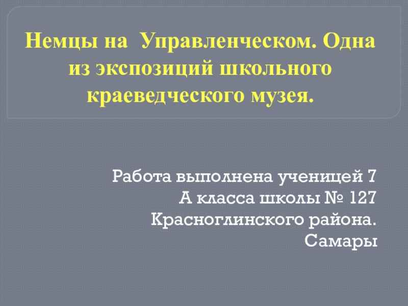 Слайд 1Немцы на Управленческом. Одна из экспозиций школьного краеведческого музея.