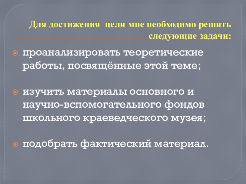Слайд 3Для достижения цели мне необходимо решить следующие задачи: