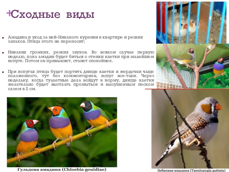 Никаких громких, резких звуков. Во всяком случае первую неделю, пока амадин будет биться о стенки клетки при малейшем испуге. Потом он привыкнет, станет спокойнее.