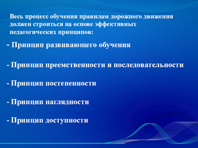 Весь процесс обучения правилам дорожного движения должен строиться на основе эффективных педагогических принципов: