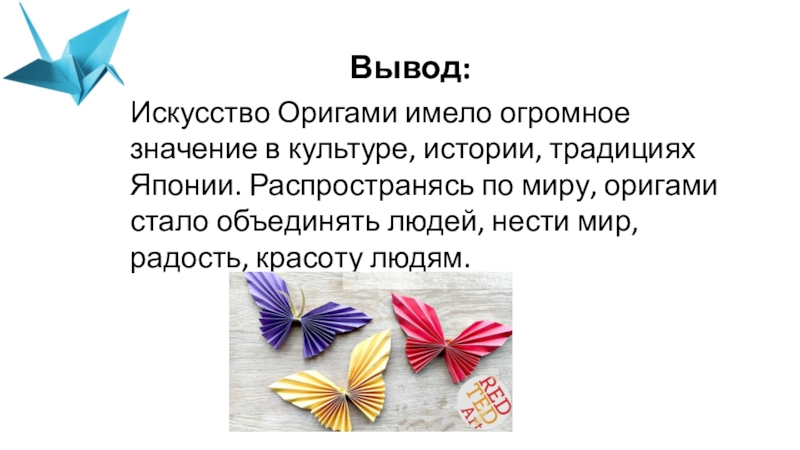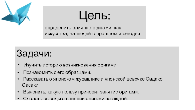 определить влияние оригами, как искусства, на людей в прошлом и сегодня