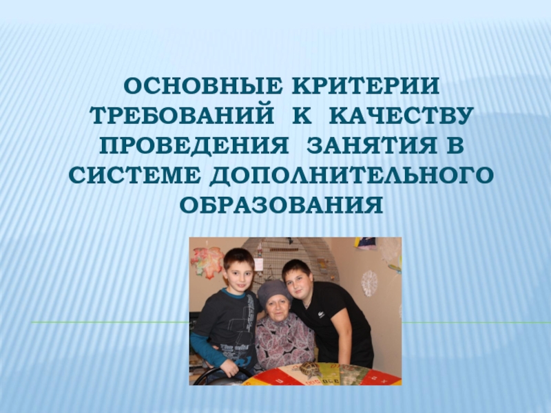 Слайд 1ОСНОВНЫЕ КРИТЕРИИ ТРЕБОВАНИЙ К КАЧЕСТВУ ПРОВЕДЕНИЯ ЗАНЯТИЯ В СИСТЕМЕ ДОПОЛНИТЕЛЬНОГО ОБРАЗОВАНИЯ