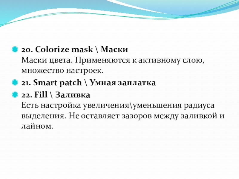 Слайд 1120. Colorize mask \ Маски Маски цвета. Применяются к активному слою,